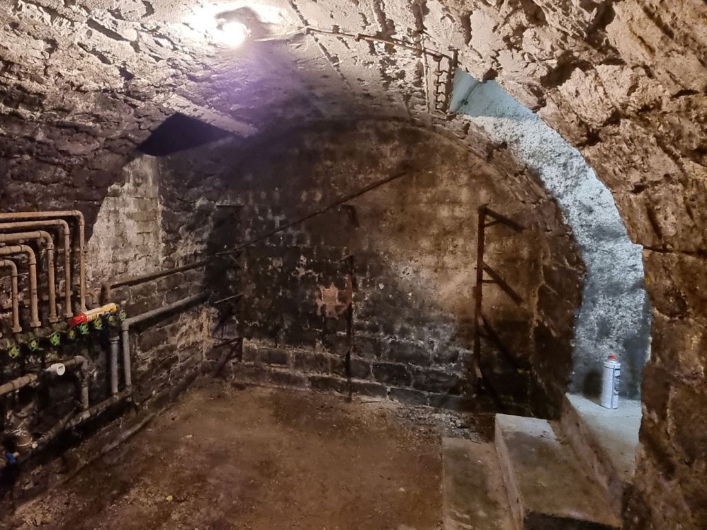 Sauberkeit & Schutz während der Arbeiten: Der zu bearbeitende Gewölbekeller wird staubsicher abgeschottet, sodass eine Verunreinigung angrenzender Räume durch Strahlstaub zuverlässig verhindert wird. Sämtliche Zugangswege werden vor Beginn der Arbeiten geschützt, damit keine Verschmutzungen oder Beschädigungen an Bodenflächen, Treppen, Türen oder Laufwegen entstehen. Nach Abschluss der Reinigung erfolgt eine kontrollierte Feinreinigung, inklusive Entfernung der Schutzmaterialien und Staubfreimachung aller Bereiche, die im Rahmen des Projekts genutzt wurden.